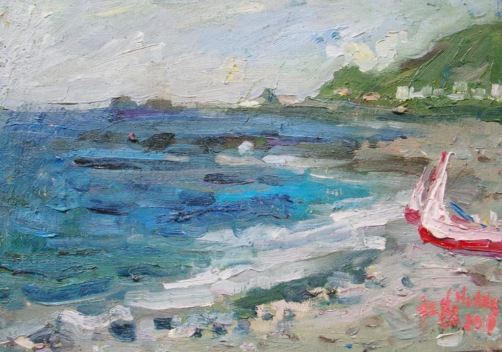 T021 黃秋燕---蘭嶼海邊 油畫 2F 2011